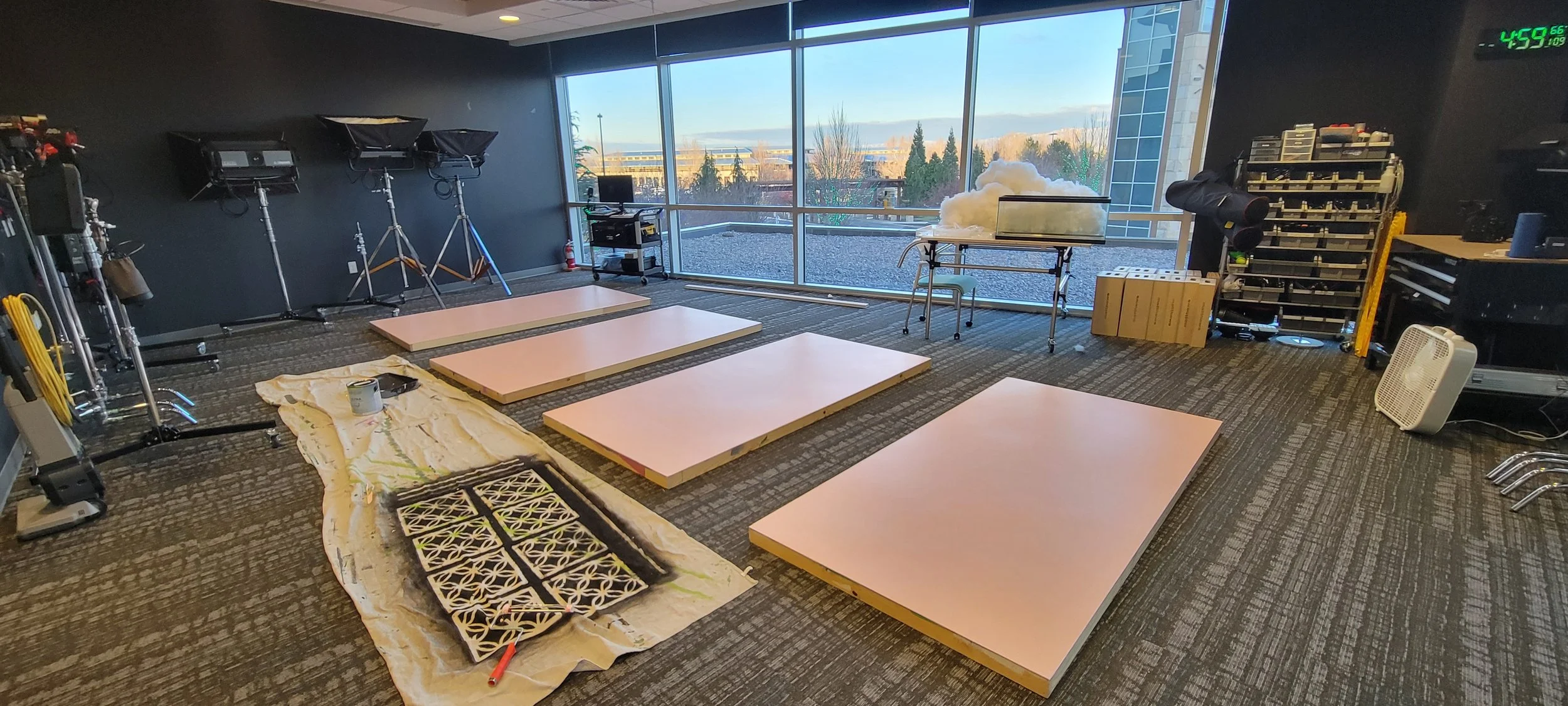 This was a wild one! We started with a completely blank canvas in an empty studio and turned it into a complete classroom!